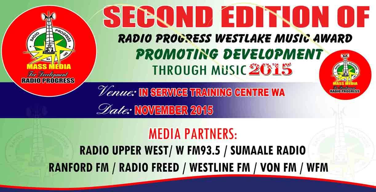 The Music Awards committee of Radio Progress formally opens nominations for the 2015 Radio Progress Upper West Music Awards. Interested Musicians can pick nominations forms for the Second Edition of the awards at the following venues: 1. Radio Progress Reception 2. Radio Upper West 3. Sungmaale FM 4. W93.5 FM 5. Westlink FM Lawra 6. Radio Freed Nandom 7. Radford FM Tumu. Nominations opens from 21st August-21st September,2015. RADIO PROGRESS UPPER WEST MUSIC AWARDS 2015 AWARDS CATEGORIES 1. BEST HIP LIFE SONG OF THE YEAR 2. BEST HIGH LIFE SONG OF THE YEAR 3.BEST AFRO- POP SONG OF THE YEAR 4.BEST GOSPEL SONG OF THE YEAR 5.BEST REGGAE/DANCE HALL SONG OF THE YEAR 6. Development Song of the year new additions 1. Artiste of the year 2. New Artiste of the year 3.Best music video of the year 4. Best Music Album of the year 5. Best Indigenous song of the year 6.Best Female Vocalist of the year 7. Best collaboration of the year For Inquiries please call 0208914458/ 0247483760 Radio Progress Upper West Music Awards.