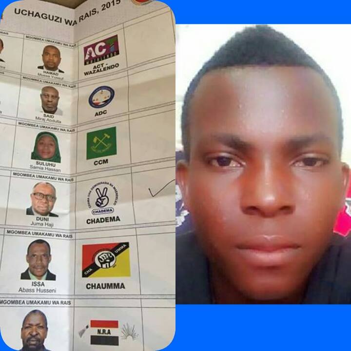Following reports from our Tanzanian correspondant, Hussen Chingwi from Der est salam, it clearly states that the country will be electing a new leader today,25th october 2015. There has been stability since the election started and they hope it stays that way until everything is over.John Magufuli of Chama Cha Mapinduzi(CCM) Against Edward Lowassa of Ukawa Photo of ballot paper below: