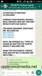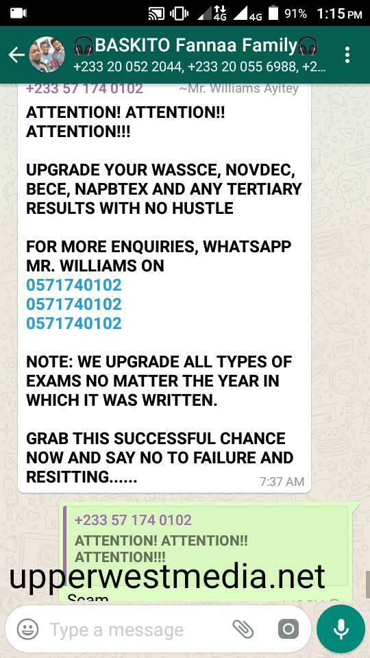 A self acclaimed results manipulator has hit WhatsApp groups claiming he can help change results for students who could not get the necessary passes to further their studies be it BECE, WASSCE, NAPBTEX, TERTIARY etc.