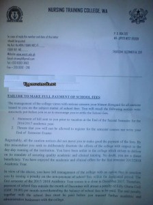 According to the informant, an undisclosed board was formed to charge an unrefundable Amount of Ghc50.00 from students who are not able to pay their fees early and fully. Students who owe even a pesewa would be charged the same amount which would multiply monthly as long as the fee owed is not paid. The special charge of Gh50.00 is not refundable and it has not been disclosed where the penalty would go to.