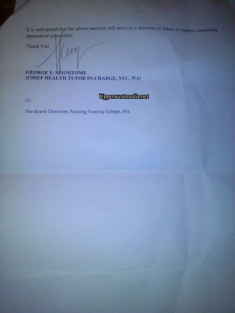 Reliable information forwarded to Upperwestmedia.net has clearly shown and exposed a ‘rot’ practice At the Wa Nursing Training College headed by George Y. Segnitome, A chief Health Tutor in charge of the school.