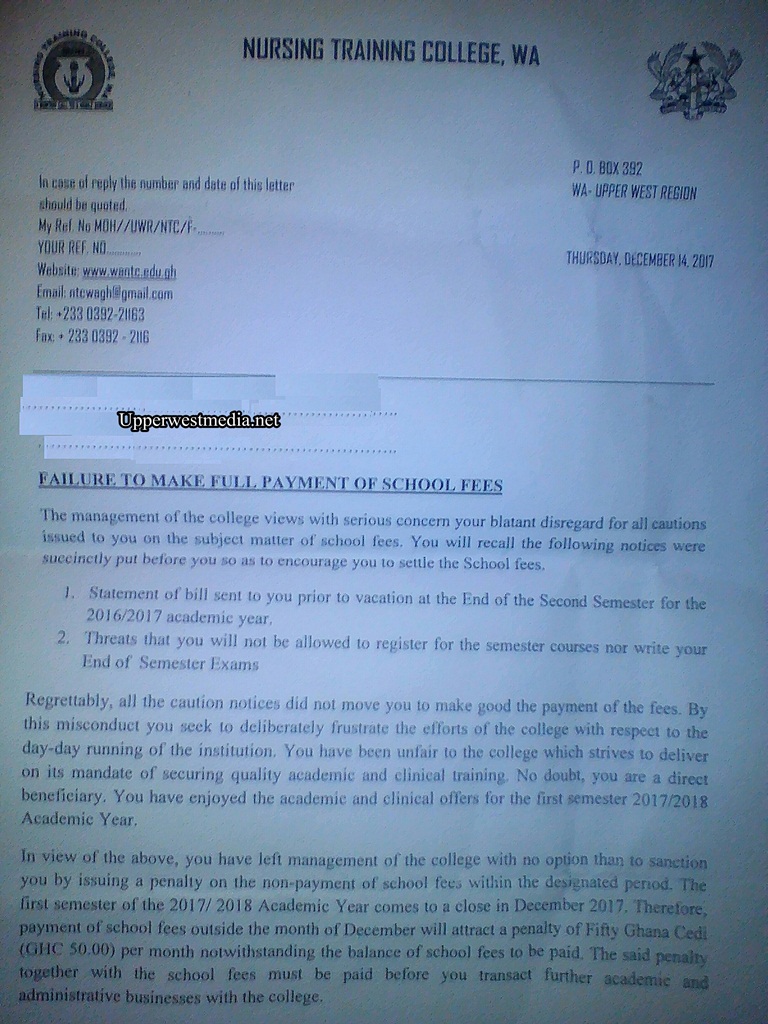 According to the informant, an undisclosed board was formed to charge an unrefundable Amount of Ghc50.00 from students who are not able to pay their fees early and fully. Students who owe even a pesewa would be charged the same amount which would multiply monthly as long as the fee owed is not paid. The special charge of Gh50.00 is not refundable and it has not been disclosed where the penalty would go to.
