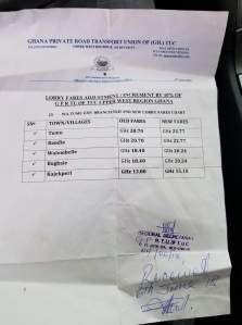 Passengers needed to pay GH18.00 to go to Wa but since the increment it has gone to GH22.00.