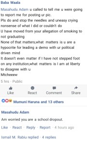 Mr. Masahudu Adams responded by referring to Baba Waala as a school Dropout who couldn’t complete he course of study at the university for Development Studies.