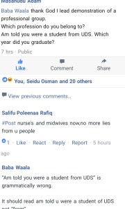 Mr. Baba Waala in response rather corrected some grammatical errors on the deputy treasurer’s facebook posts adding that UDS passed through him.