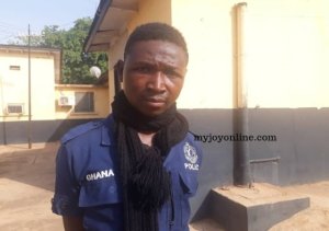 Peter Suntaa Winslows who was dressed in police uniform when he was arrested at Kpaguri upon a tip-off.