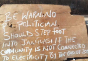 Members of the youth group who looked upset and despondent have mounted a giant bill board at the community’s entrance which reads: “Be warn, no politician should step foot into Janguasi to campaign if our community is not connected to electricity by end of 2019”.