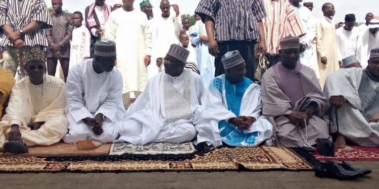 The Vice President of the republic, H.E Alhaj Dr. Mahamudu Bawumia joins scores of Muslims in Wa, the regional capital of the Upper West Region to mark this year’s Ed-ul-fitr. The Veep coming to the Upper West Region to perform the Eid prayer was earlier disclosed by him in Bulenga in the Wa East district of the Upper West Region during his Ramadan tour to the Upper West Region.