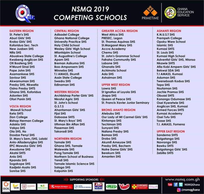 The National Science and Maths quiz Co-Founded by the Ghana Education Service has sorted out the list of schools to partake in this year’s quiz competition.