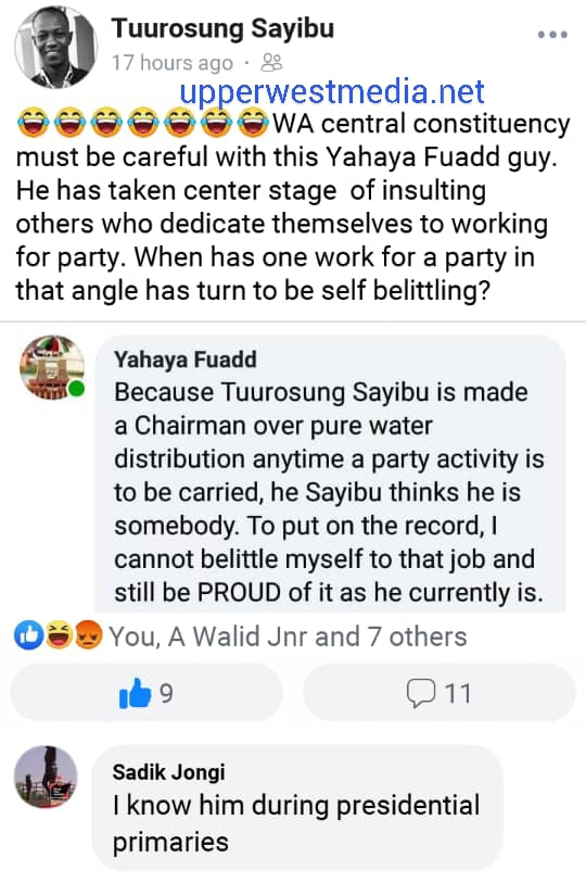 One of them identified as Yahayya Fuad described a management role of another by name Tuurosung Sayibu as Cheap adding that the he wouldn’t stoop low to accept such a task assigned to Sayibu. He referred to Sayibu as a show off.