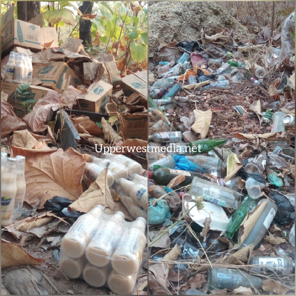 Some expired milk Drinks spotted by Upperwestmedia Team were disposed off in the Forest lately alongside some empty glass bottles which hardly decay off.