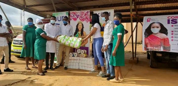 Winner of 2014 edition of Ghana’s most beautiful Abigail Baciara has donated Protective equipment to her hometown Kon amidst the covid-19 pandemic.