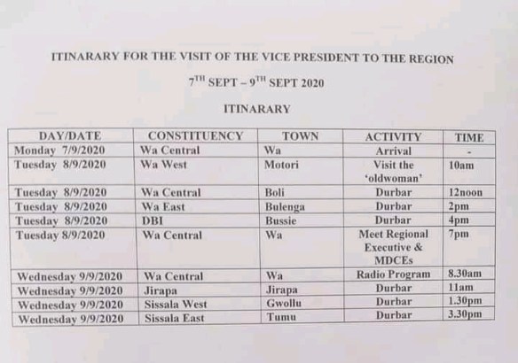 Vice President of the Republic of Ghana and Running Mate to Flag bearer of the New Patriotic Party(NPP), Dr. Mahamadu Bawumia will on the 7th of September 2020 be visiting the Upper West Region till the 9th of September 2020.