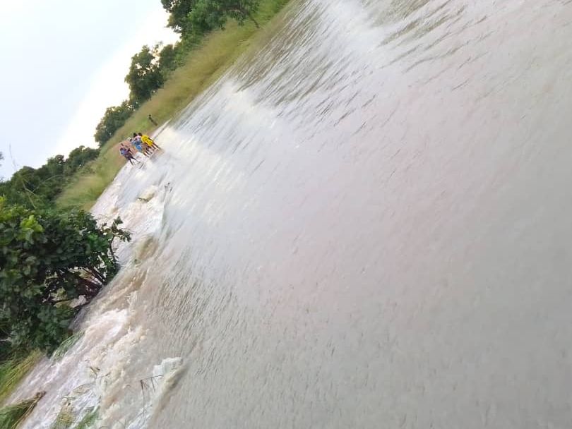 The Kandomwine Da-uri river is over flooded again and the heavy water the comes is currently running across the road and all who use this road should be cautious.