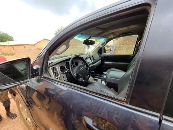 “Whilst returning around 7:45PM lastnight between Jeffisi to Bullu,three men suddenly appeared from both end of the bush holding a torchlight and masked face and wielding guns,I asked my driver to stop with our windows closed,one of the assailants turned towards the driver pointing the torchlight at us in the car, at that point, the security on the front seat by driver fired through the side window of the driver injuring the attacker in the process whilst another one from the rear was also shot at with the shot gun and my driver sped off towards Gwollu”. He praised his security saying ;