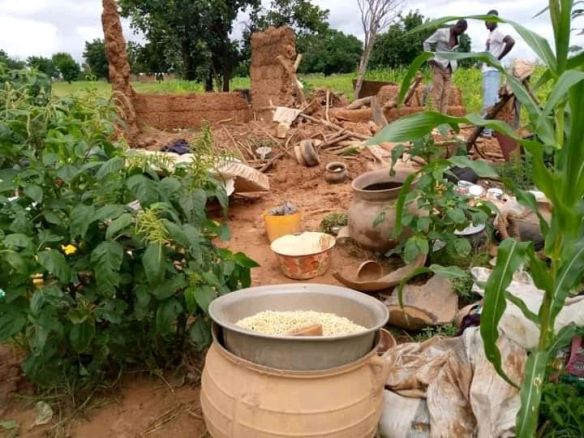 According to the aged Dongsaage Sungnoba, all her food stuffs have been lost to the collapsed building. Some cooking utensils have also been damaged.