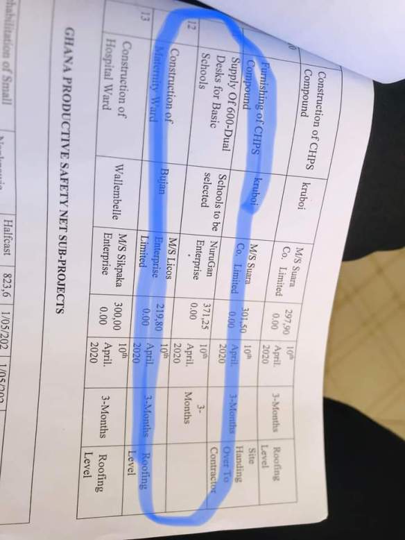 The contract awarded to NuruGan Enterprise in an amount of 371,250.00 cedis which was to be executed in 10 April 2020 has not been accounted for, therefore the assembly members have called for further information on the execution of the contract before adopting the MCE speech.
