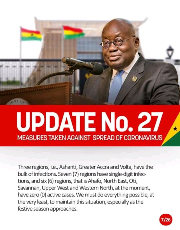 President of the Republic of Ghana, H.E Nana Akufo-Addo issued his 27th Address on Covid-19 and other related developments.