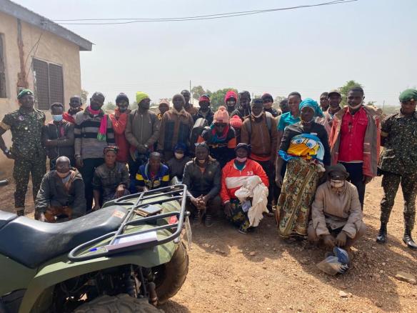 On Wednesday 22nd December, 2021, at exactly 0840HRS, the vigilant personnel in the Wa West District Command, deployed along the unapproved routes at the Dabo stretch bordering neighbouring Bukina Faso intercepted Thirty (30) Burkina Faso nationals comprising of Twenty-Five (25) males and Five females.