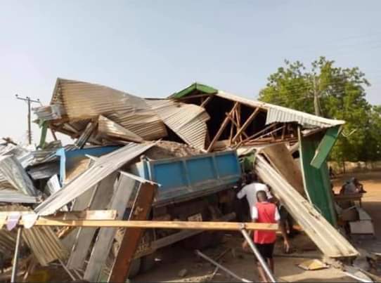 An eye witness, Iddrisu Salifu narrating the incident to GhanaWeb’s Upper West Regional correspondent, IIyaas Alhassan said the tipper truck first demolished a kebab stand situated in front of the shops whose attendant had not yet come to work, before demolishing the veranda to the provision store and finally running into the tailoring shop.
