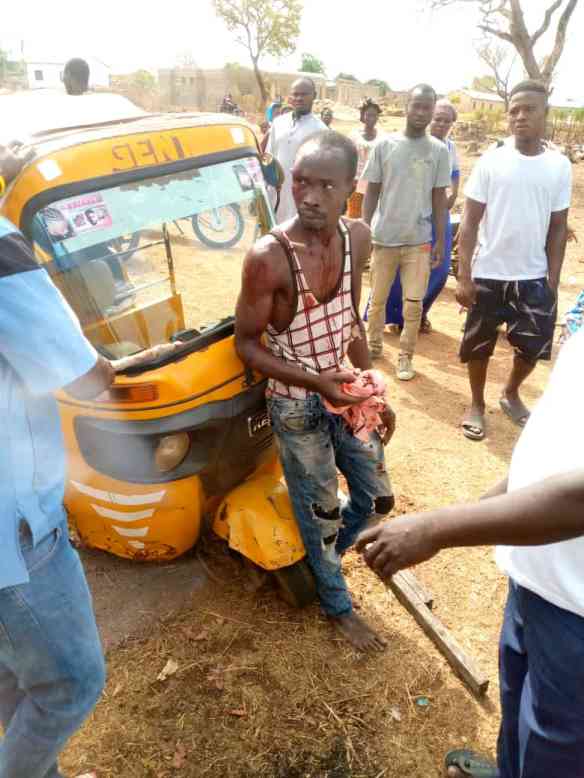 According to Eyewitnesses, he stole the goat and hid it inside a Bajaj Tricycle Popularly called Mahama Camboo in Wa. Some Residents Saw him in the process of Leaving the area and went after him, luck eluded him and he was caught.