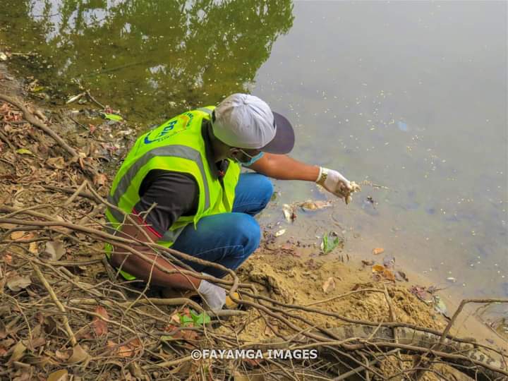 Two batches of team first comprising the security agencies visited the Gbelle Resource Reserve and assessed the crime scene which is the camp three river where a suspected group of people used poisonous chemicals to contaminated a water body just for the fish inside to die and stay afloat to enable easy catch regardless of the ramifications of the chemical usage to consumers.