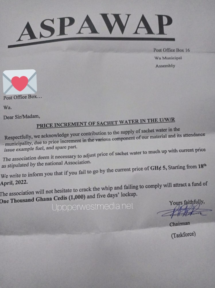 Checks in Jirapa An neighboring districts prove water prices are stable, some businesses have revealed that producers in Wa Send water to Jirapa and Nadowli to sell at Ghc3.50.