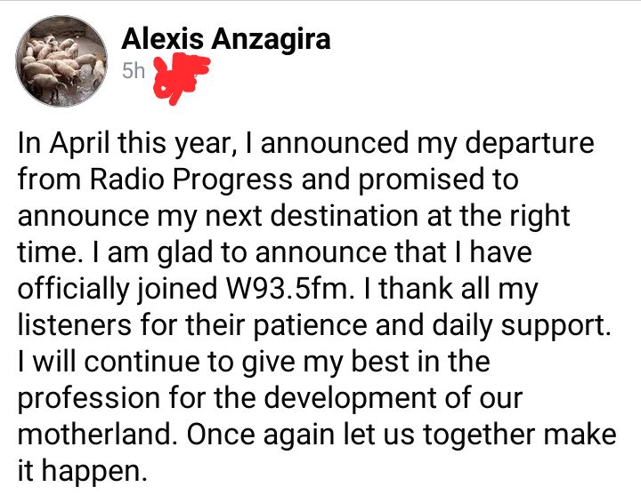 “In April this year, I announced my departure from Radio Progress and promised to announce my next destination at the right time. I am glad to announce that I have officially joined W93.5fm. I thank all my listeners for their patience and daily support.