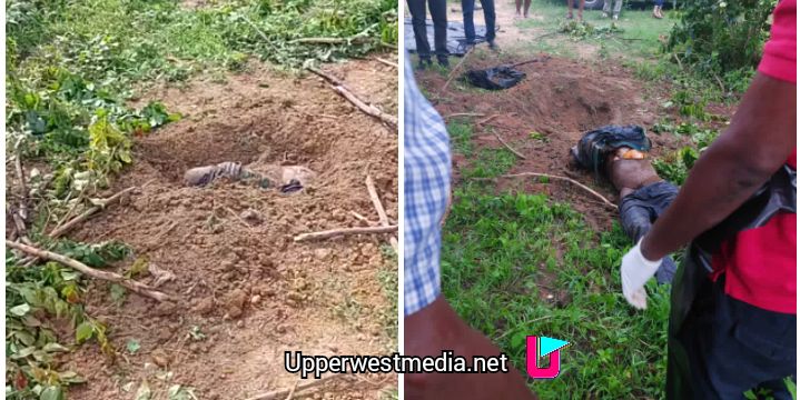 According to an Eyewitness by name Eliasu, he explained to the Media that he went to urinate and noticed that some sticks parked on top of leaves and as a result they went closer to uncover what was under the leaves, they noticed a body after they had picked up the sticks and leaves.