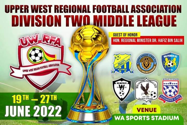 Six clubs, namely, WA United, Maana Football Club, Kong Danger Stars, WA Power SC, Biyad 77 Stars and Real 24 Hours Football Club will compete for the Upper West Regional Division Two title beginning on Sunday, June 19, 2022, at the WA Sports stadium.