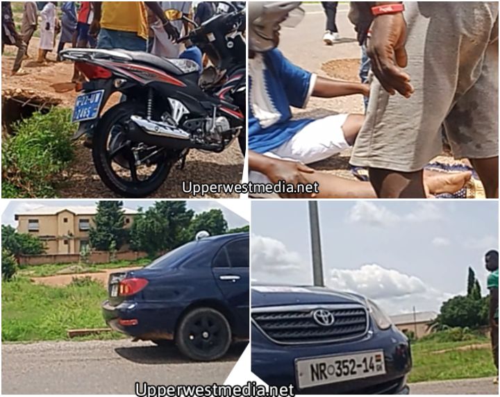Mr. Baba was on a Haojue 110-5 motorbike with Registration Number M-22- UW – 2465-22 heading from Wa Poly street where he went to wash his Motorbike, toward the Nakore junction when the Toyota Corolla Car with Registration number NR-352-14 was to turn around on the road, it the process of turning around on the middle of the road, the motor rider crushed onto the car and fell on his right leg.