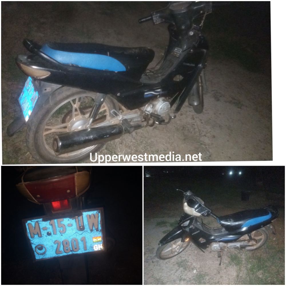 The motorcycle with registration number M-15-UW 2801 was parked under a shea tree at Dokpong, Few meters from Puopeli FM.