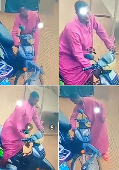 A Young Man in Pink jallabia was captured in a CCTV footage on 7th September unlocking a motorbike owned by a lady known as Dumbu Ubeida.