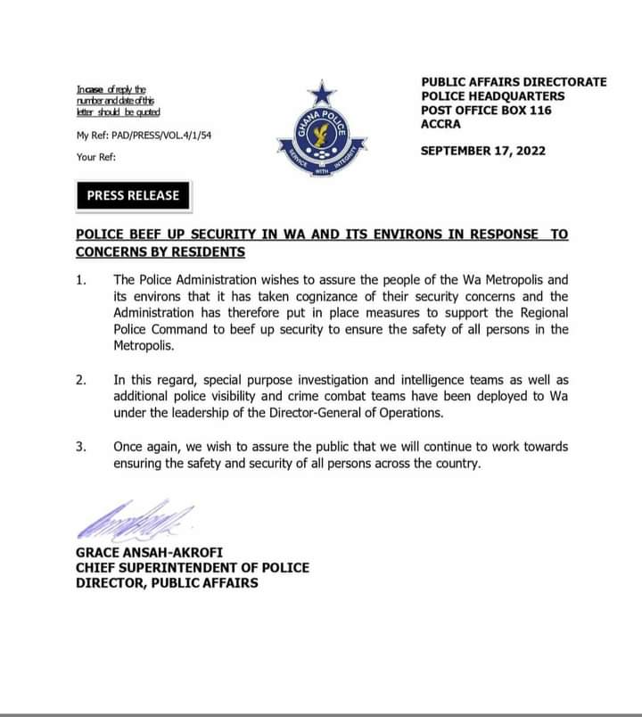 The Ghana Police Service by directives from the Ministry of Interior has deployed hundreds of police officers to the Upper West Region capital of Wa.