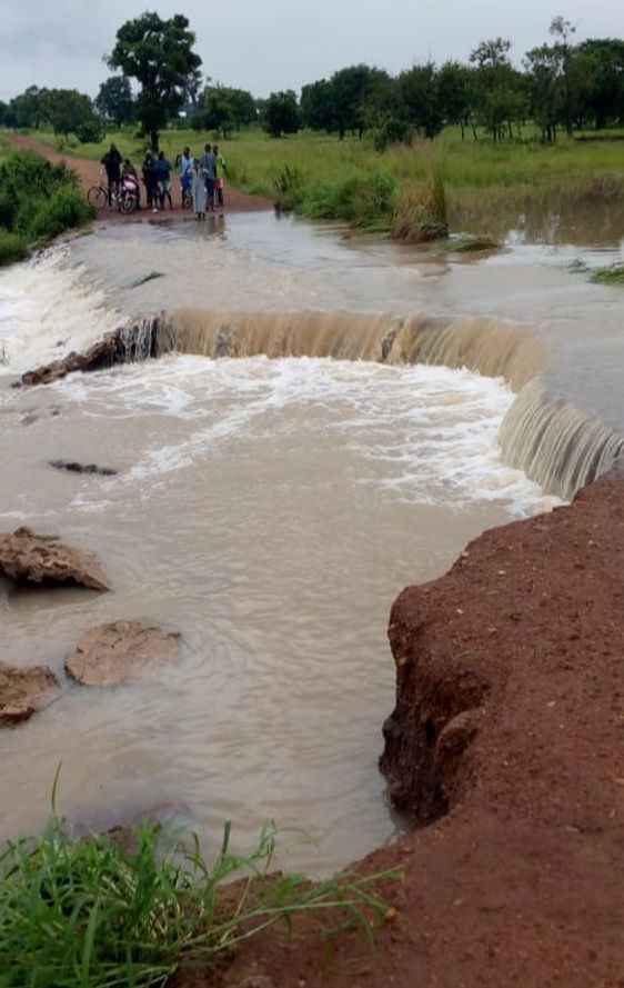 The heavy downpours yesterday in the night and this morning have left the people of Zingu and its surrounding communities stranded as the road is overtaken by cascading waters.