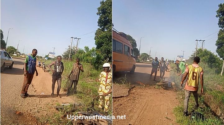 He was riding an apsonic jive with registration number 15-2757-UW when all of a sudden there was a fire Outbreak beneath motorbike, several road people by the road shouted to draw his attention but due to a helmet he was wearing, there was hearing impairment.