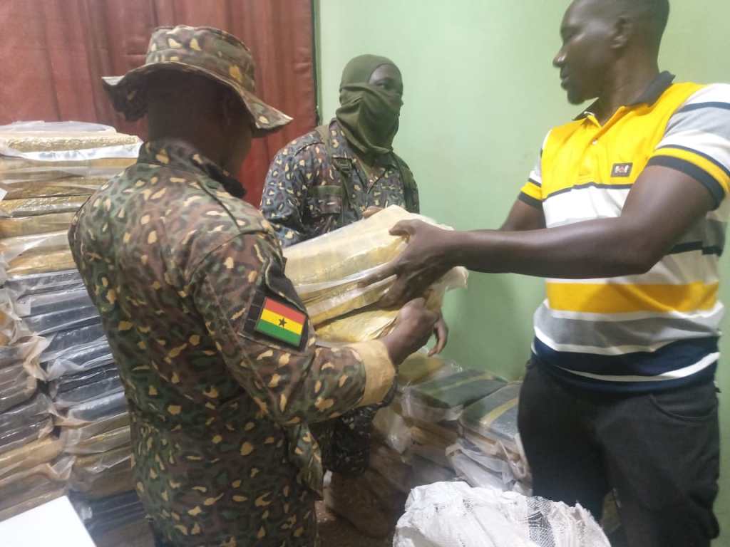 On the 1st of December, 2022, at about 0800HRS, a joint Immigration and FPU personnel were on a routine patrol on some identified unapproved routes bordering neighbouring Burkina Faso. At about 1023HRS, and acting on an Intel, the team conducted a swoop in a house of a certain man called ****** (Name withheld) at LIERO, a community around Fielmuo. It was revealed that most of the rooms were stocked with sacks of bags containing compressed substances suspected to be marijuana.