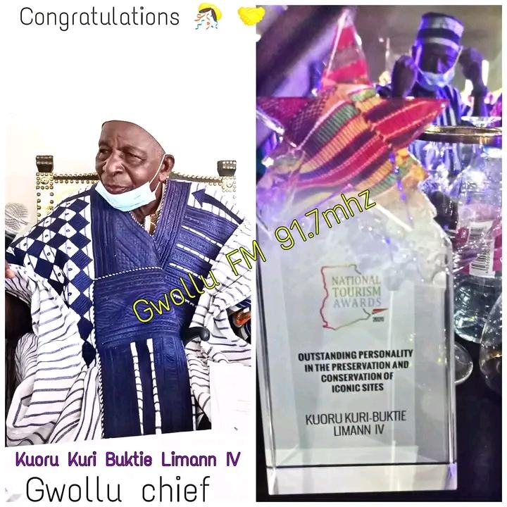The Paramount Chief and President of the Gwollu traditional council, Kuoru Kuri Buktie Limann IV in the Sissala West District of the Upper West Region was honored at the 2020 National Tourism Awards in Accra among the 18 awardees.