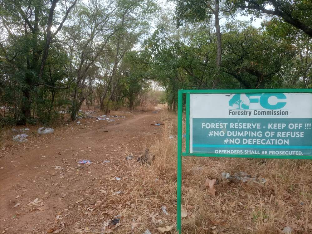 The Forestry Commission has issued a Statement at an entry point of the Wa forest cautioning people Against dumping refuse and openly defecation in the forest.