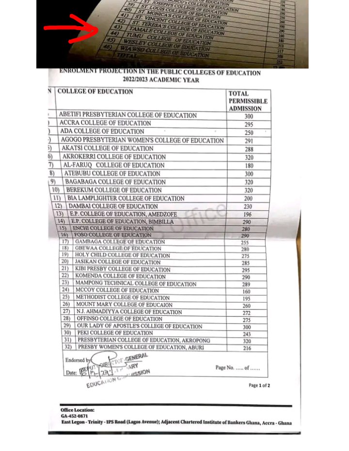 This Means The Three Public Colleges of Education including McCoy, NJA and Tumu Training College will be Admitting a Total of 649 Students for the Academic Year. This means the Degree Awarding University Colleges have had their quota for Admission Reduced.