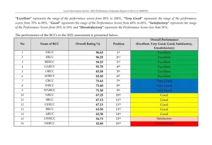 Upper East Regional Coordinating Council was also Eleventh with an Overall Rating of 67.13. There was no No 12th Position.