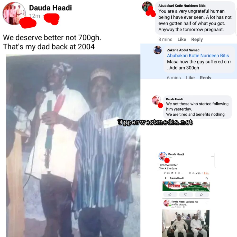He referred to amount of Ghc700 given to him as a token that could hardly solve anyone’s problem. According to Haadi, he deserves better than Ghc700 given to him by the member of Parliament. Dauda however did not disclose why he was given the said amount but Expressed dissatisfaction with the treatment he was receiving as a party Executive of the NDC.