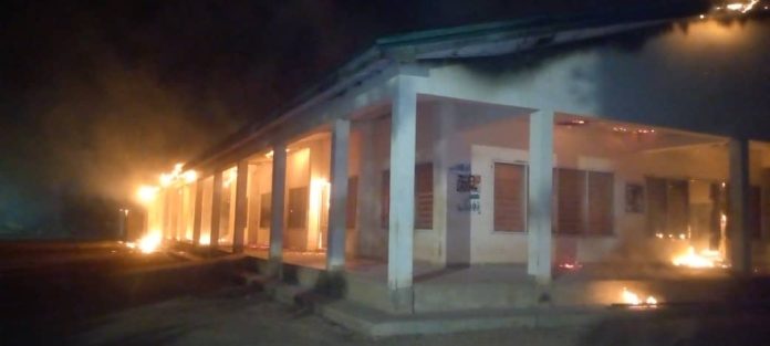 The fire completely destroyed the roof of the dining hall, food stuff, over 5000 exercise books and other stationery belonging to the school.