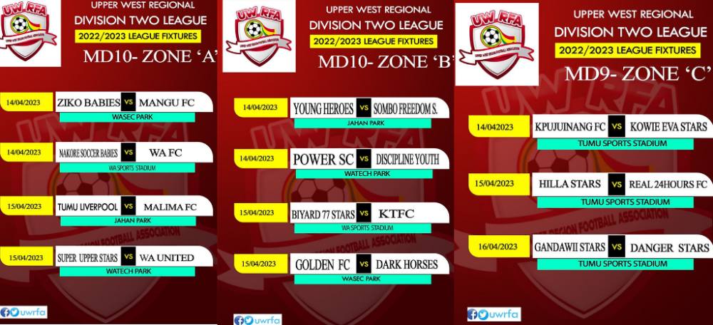 The Upper West Regional Division Two League Match week 10 is set to take place on the 14th of April and the 16th of April.