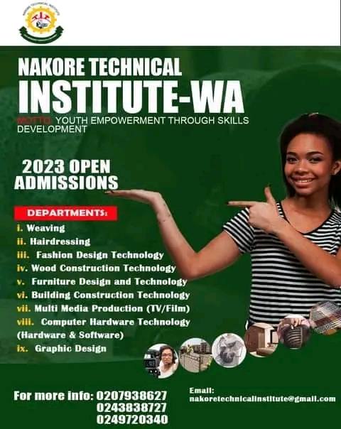 There are slots opened for Admissions and the school is part of the TVET Schools of the Region including Wa Technical Institute and Naa Momori Technical Institute.