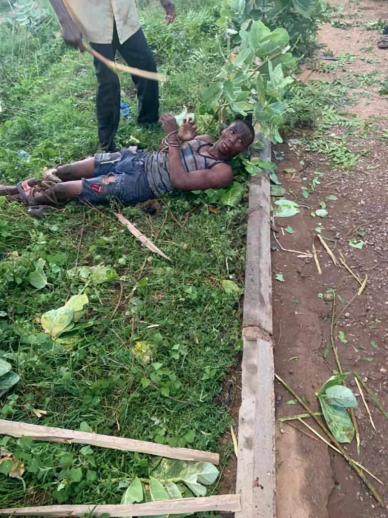 The Suspect only identified as Toffic attempted taking some valuable items away from some targeted individuals but was apprehended in the act, he tried to run away in the process but couldn’t so he resorted to using a Cutlass on his target in order to have a free space to abscond.