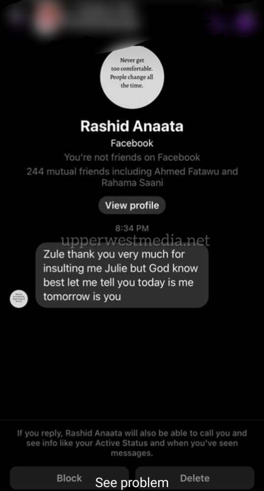 An Embattled Paedophile of Wa who is currently on the Run has gone all out on a lady known in Showbiz Circles as Zule Zule for Criticizing his actions of Defiling underaged girls.