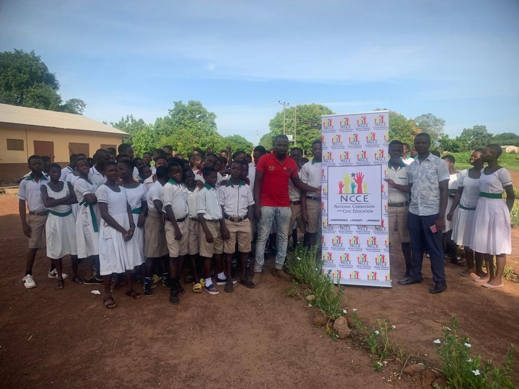As part of the Daffiama Bussie Issa District Directorate of the National Commission for Civic Education (NCCE) commitment to contributing to deepening citizen’s understanding of democratic values to fostering national cohesion giving the team of the celebration, sensitization events were organized at the Wogu Junior High School.