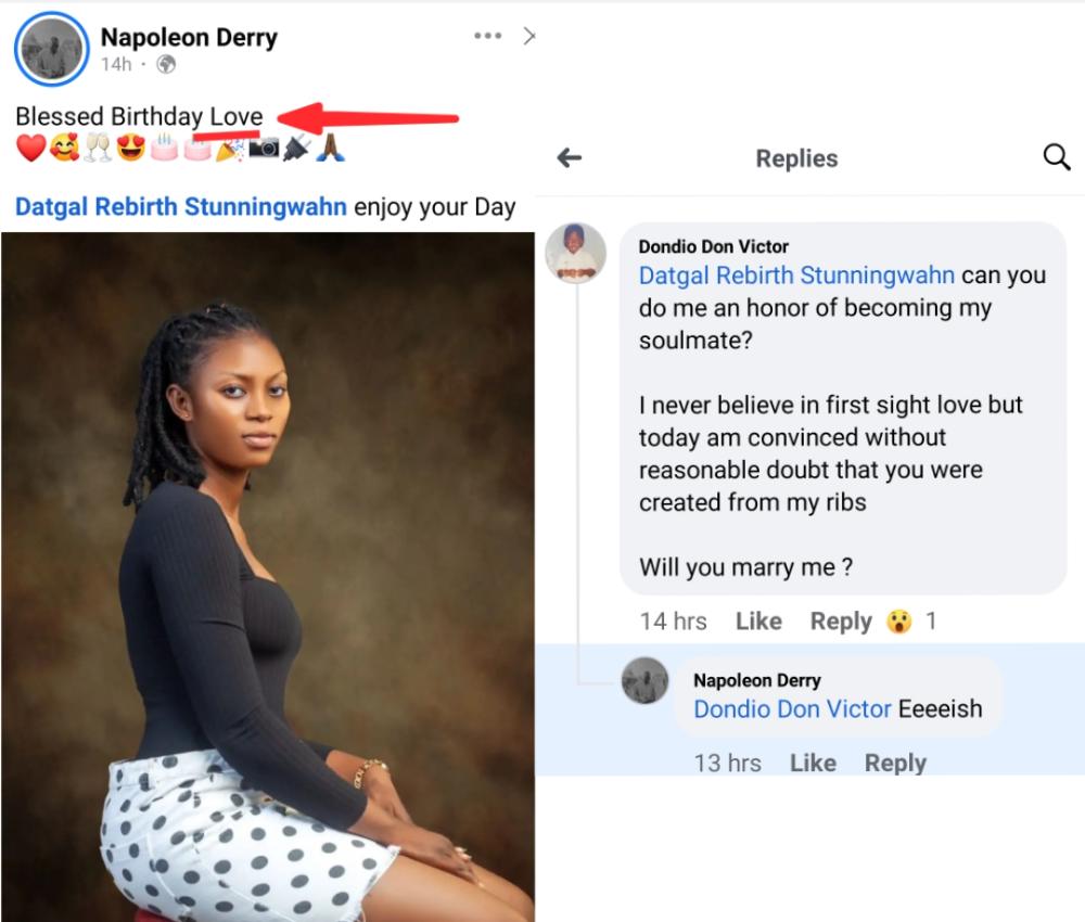 Meanwhile Napoleon Expressed shock when a young man by name Dondio Don Victor drafted an open love proposal to his potential wife