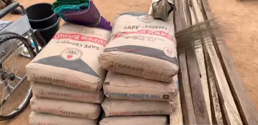 On Thursday, 6th of July 2023, Some Reporters Of Sungmaale FM Visited the community with items including Zinc, cement, Wheelchairs, 2/7 wood logs, Brooms, Buckets, Soap etc to assist her in constructing a befitting place for patients with fractures and bone dislocations.